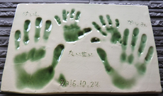 オリジナル手形足形陶板は記念品に最適です。 |