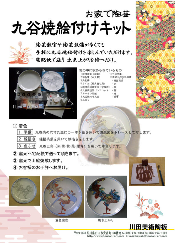 ![]() 【お家で陶芸】 ◆九谷焼絵付けキット・本格筆セット ¥18,000+税(往復送料・焼成代) |
