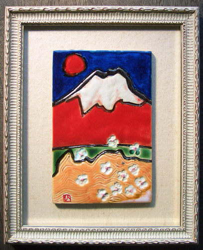 赤富士を陶板画に焼きあげました。