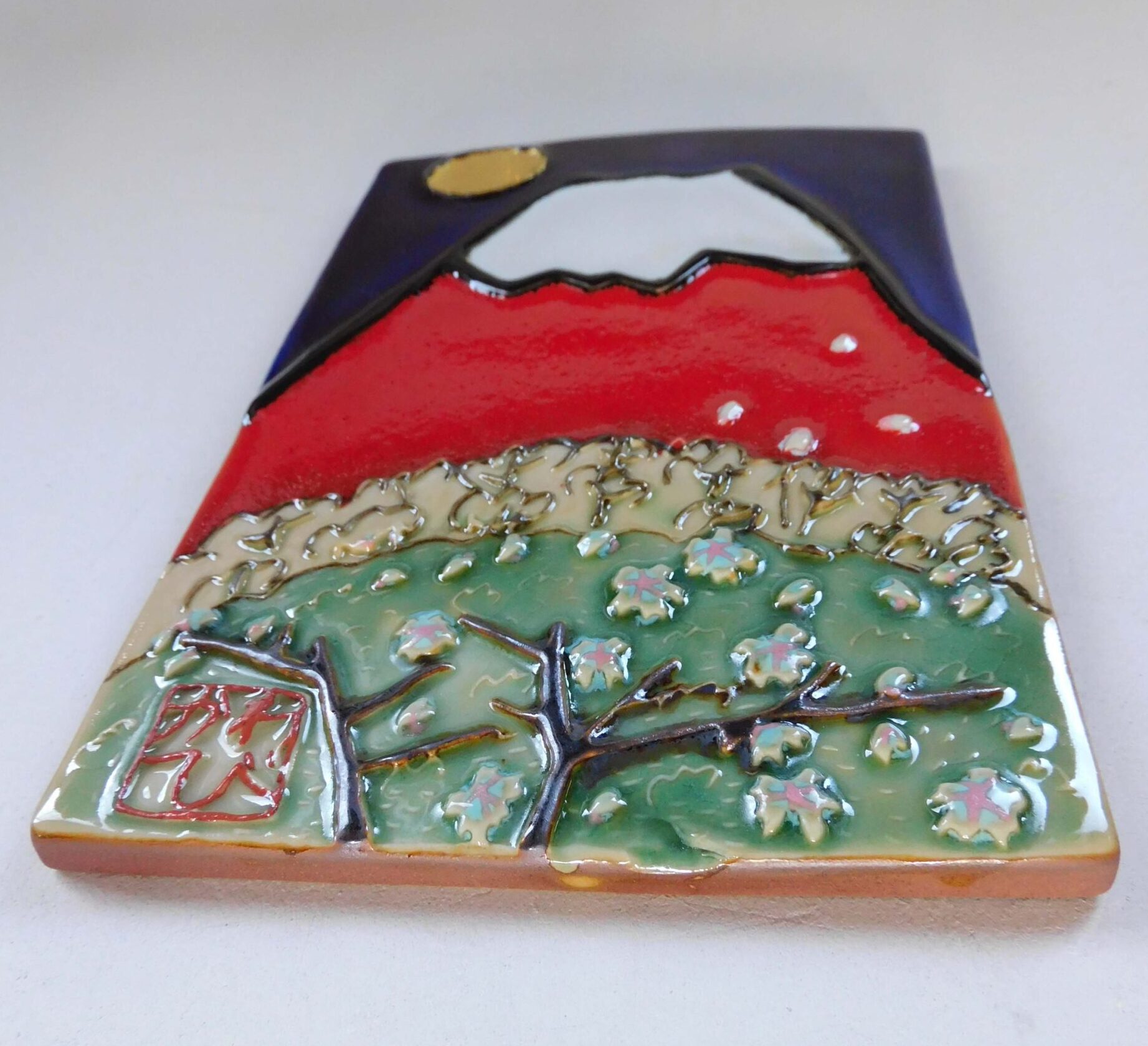 そんな大変縁起が良いと言われている赤富士を川田美術陶板では陶板で焼き上げてお届けいたします。