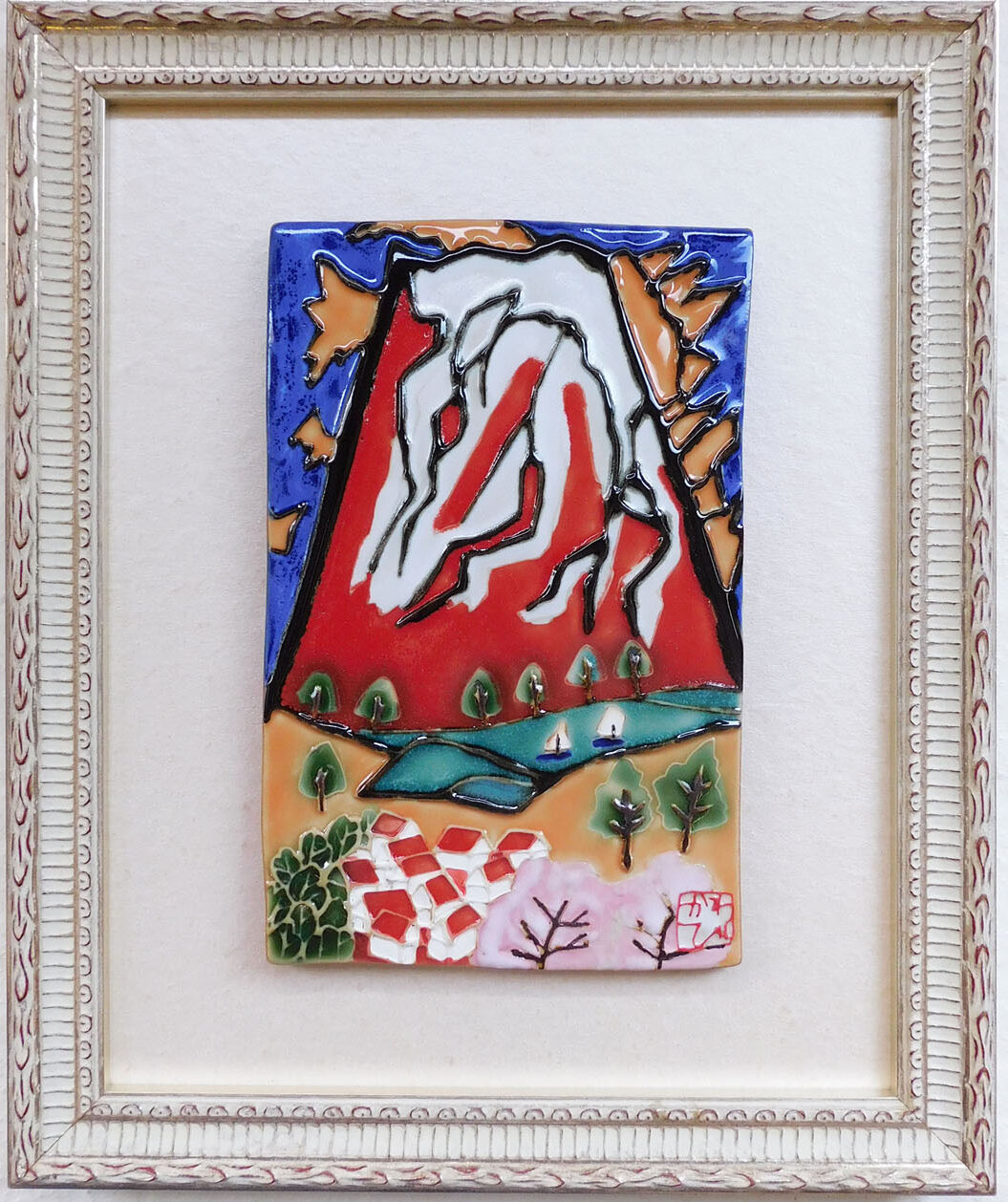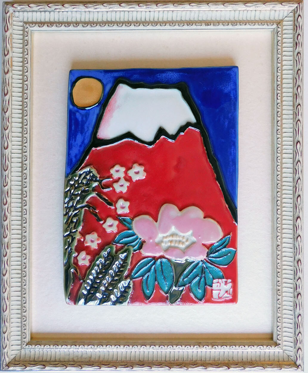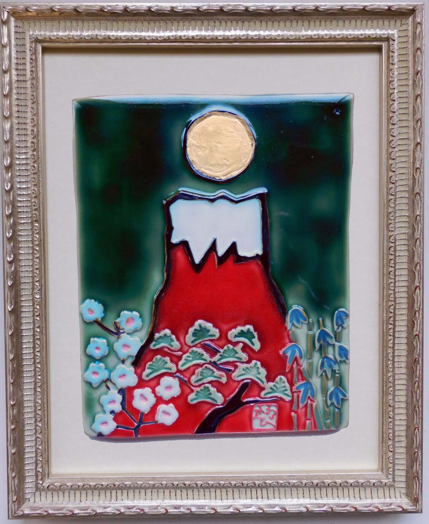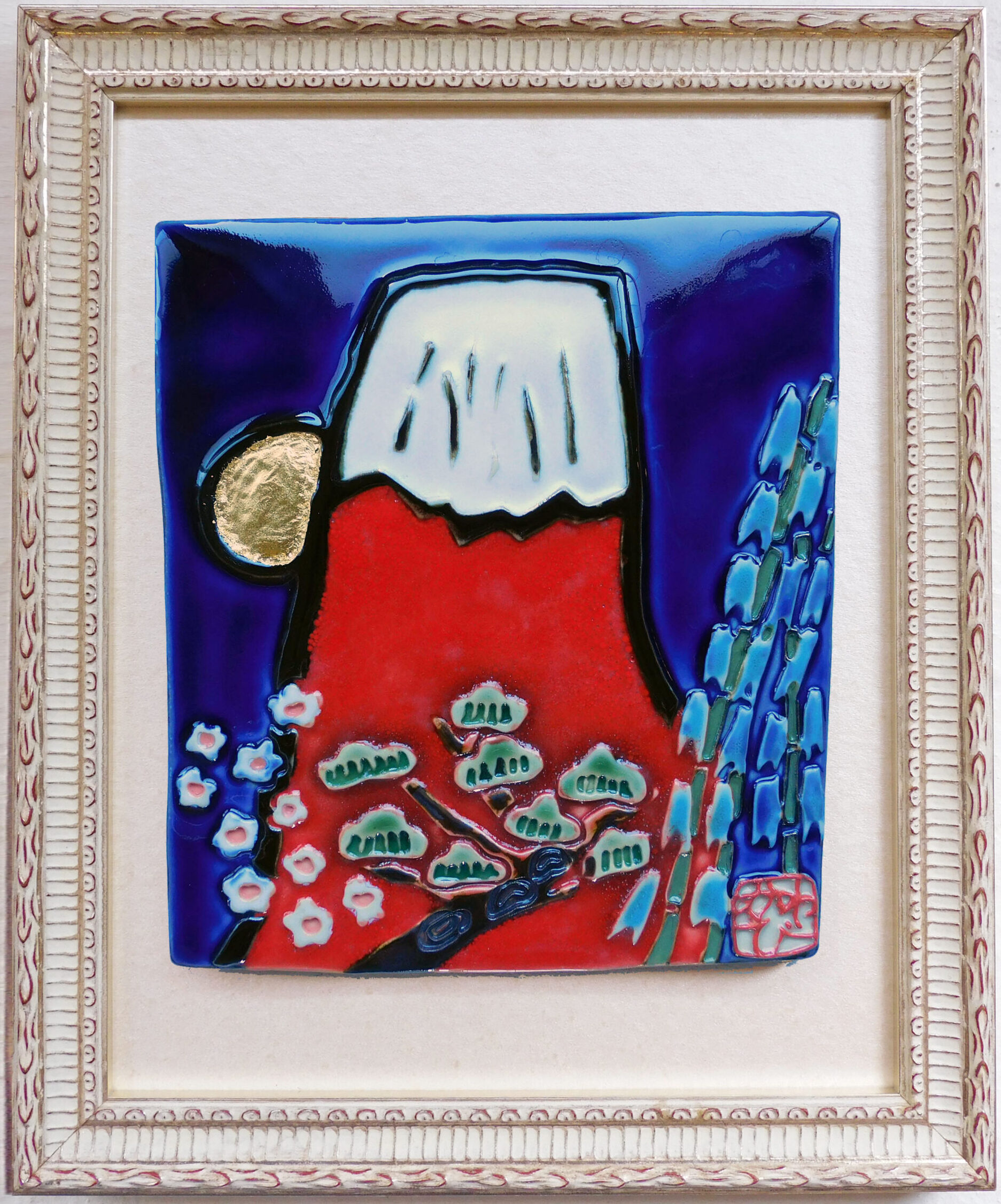 赤富士陶板1 原画いづみ椿魚 制作川田美術陶板 【価格】99000+税