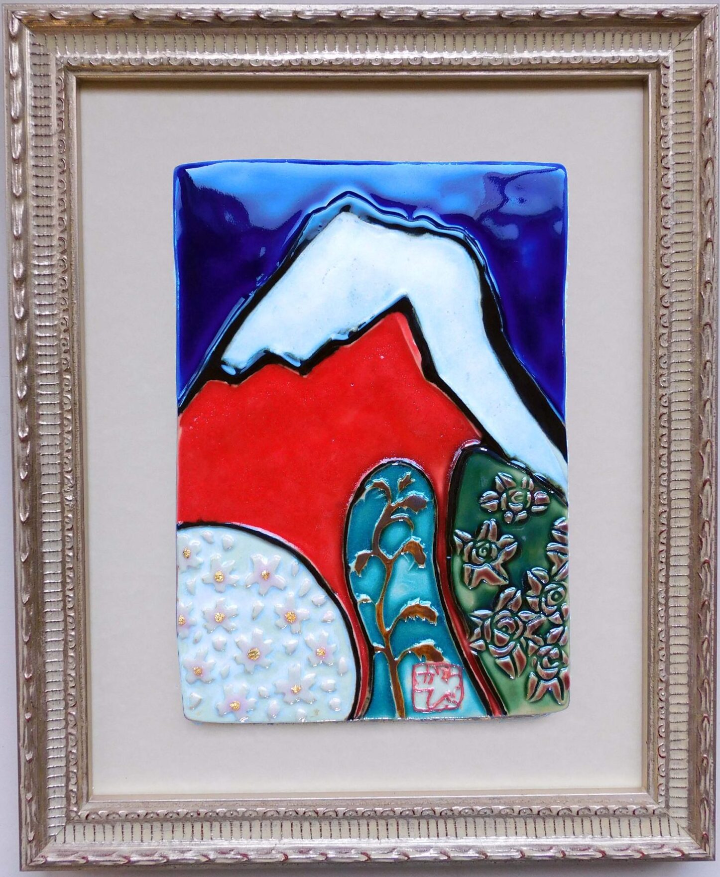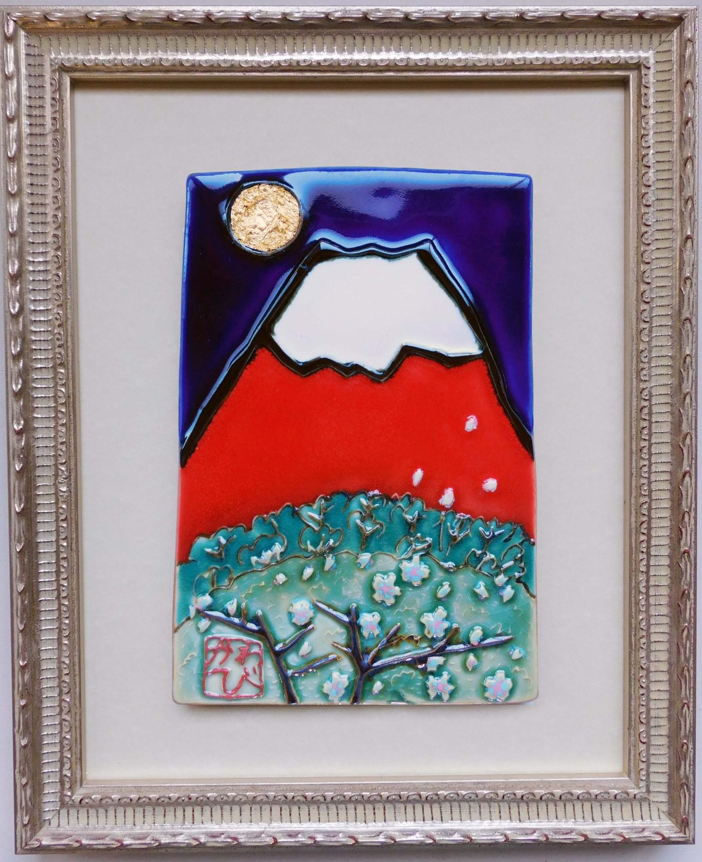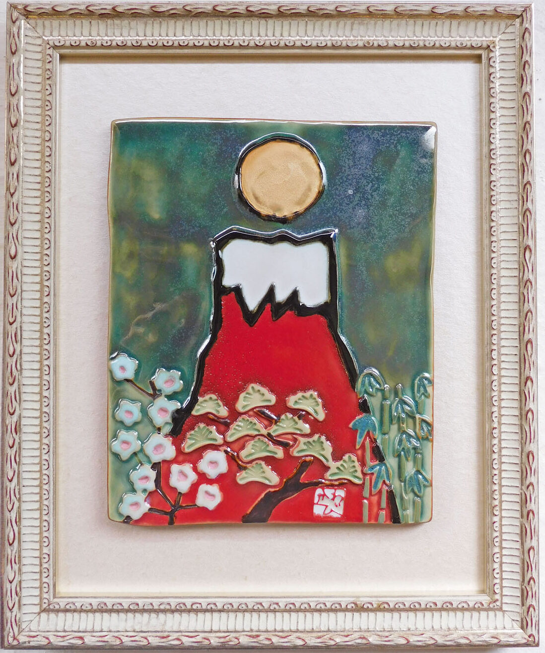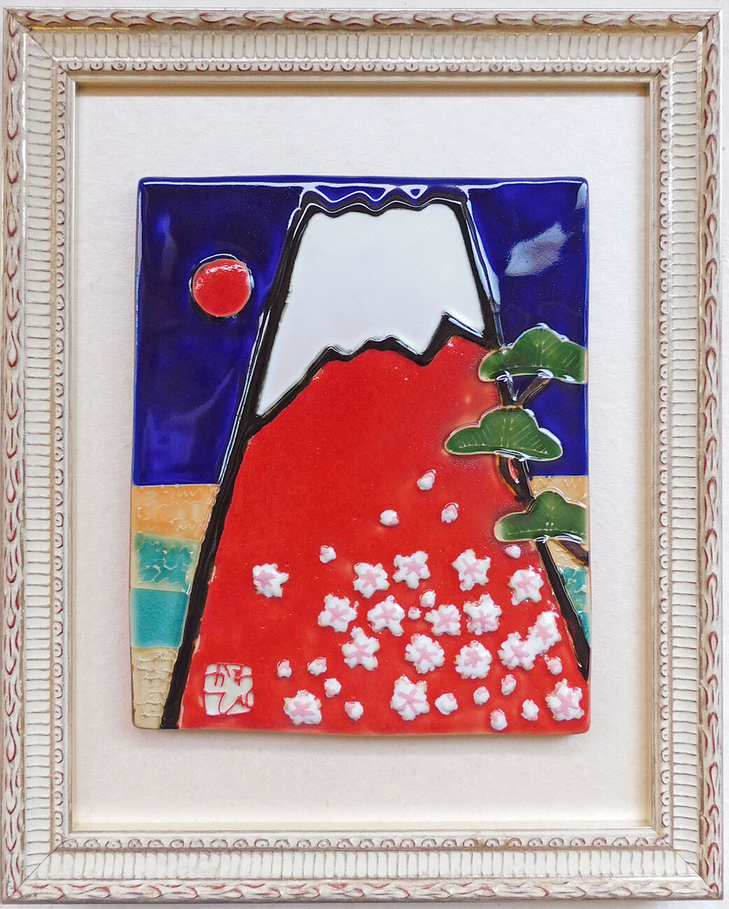 赤富士陶板1 原画いづみ椿魚 制作川田美術陶板 【価格】99000+税