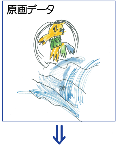 お客様が描いたイラスト原画をスマホやデジカメで撮影して、添付ファイルでご送付ください。