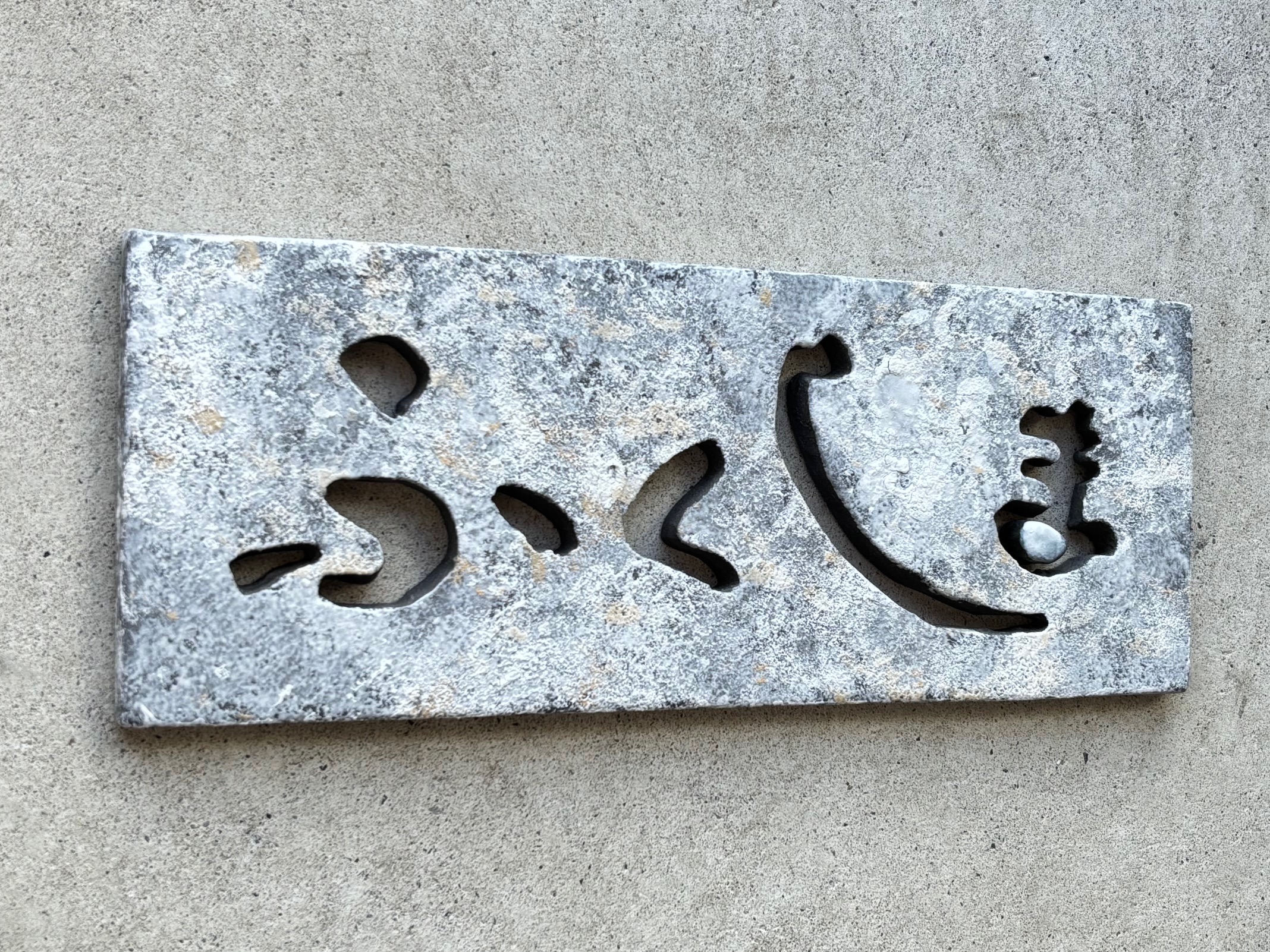シンプルながら、文字の曲線や抜き加工の美しさには職人の技が息づいています。
