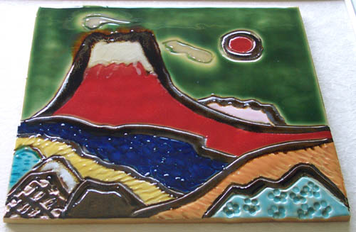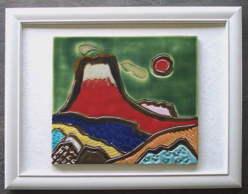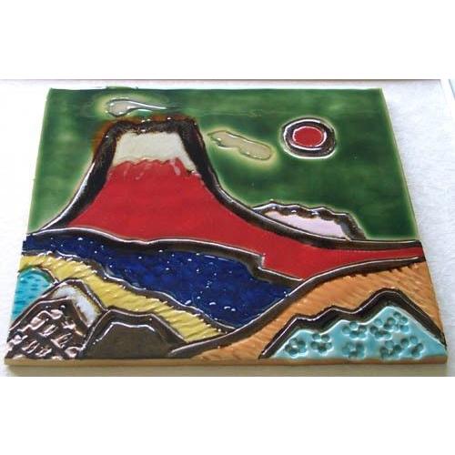 紅葉が錦の織物のように美しい秋の赤富士を、陶板に描きました。