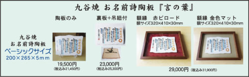 お名前詩の九谷焼陶板『言の葉』に気持ちを込めて。