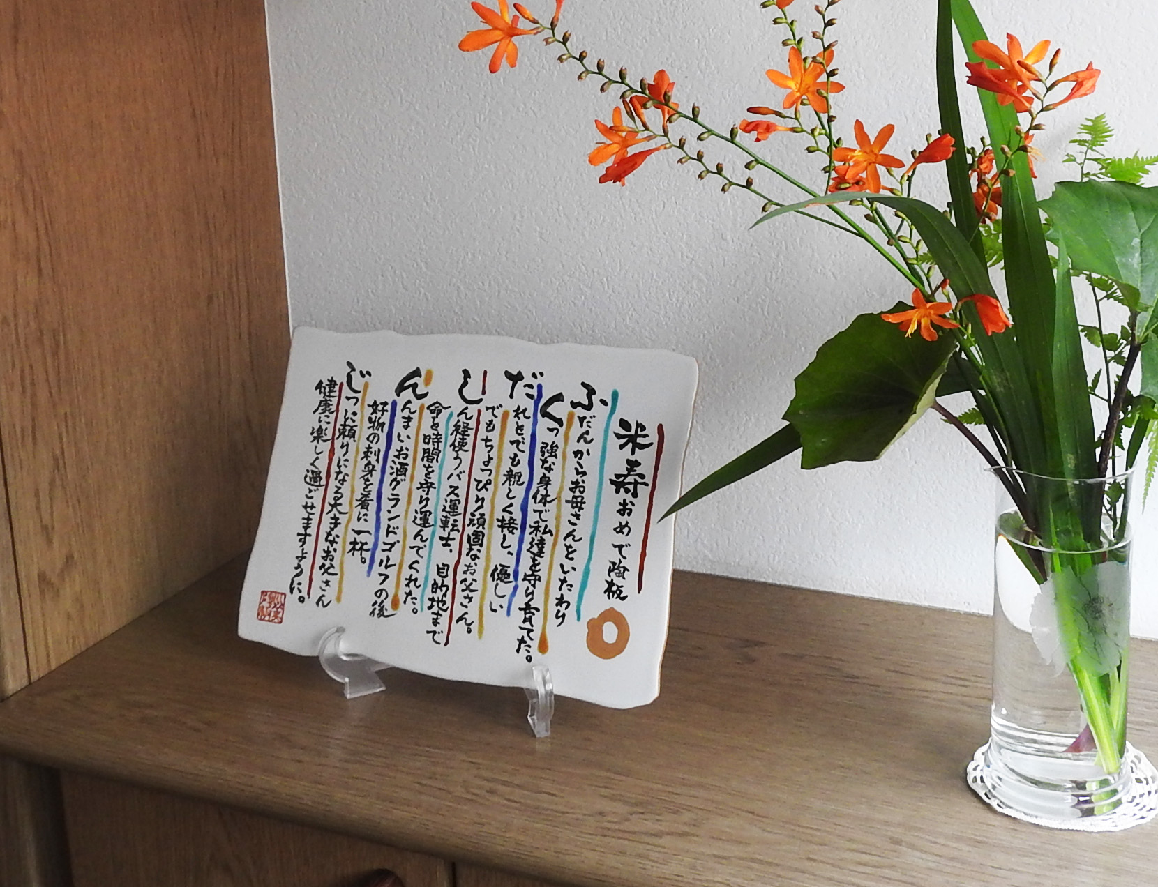 卒寿90歳の誕生に、ありがとうの気持ちを九谷焼陶板にしました。