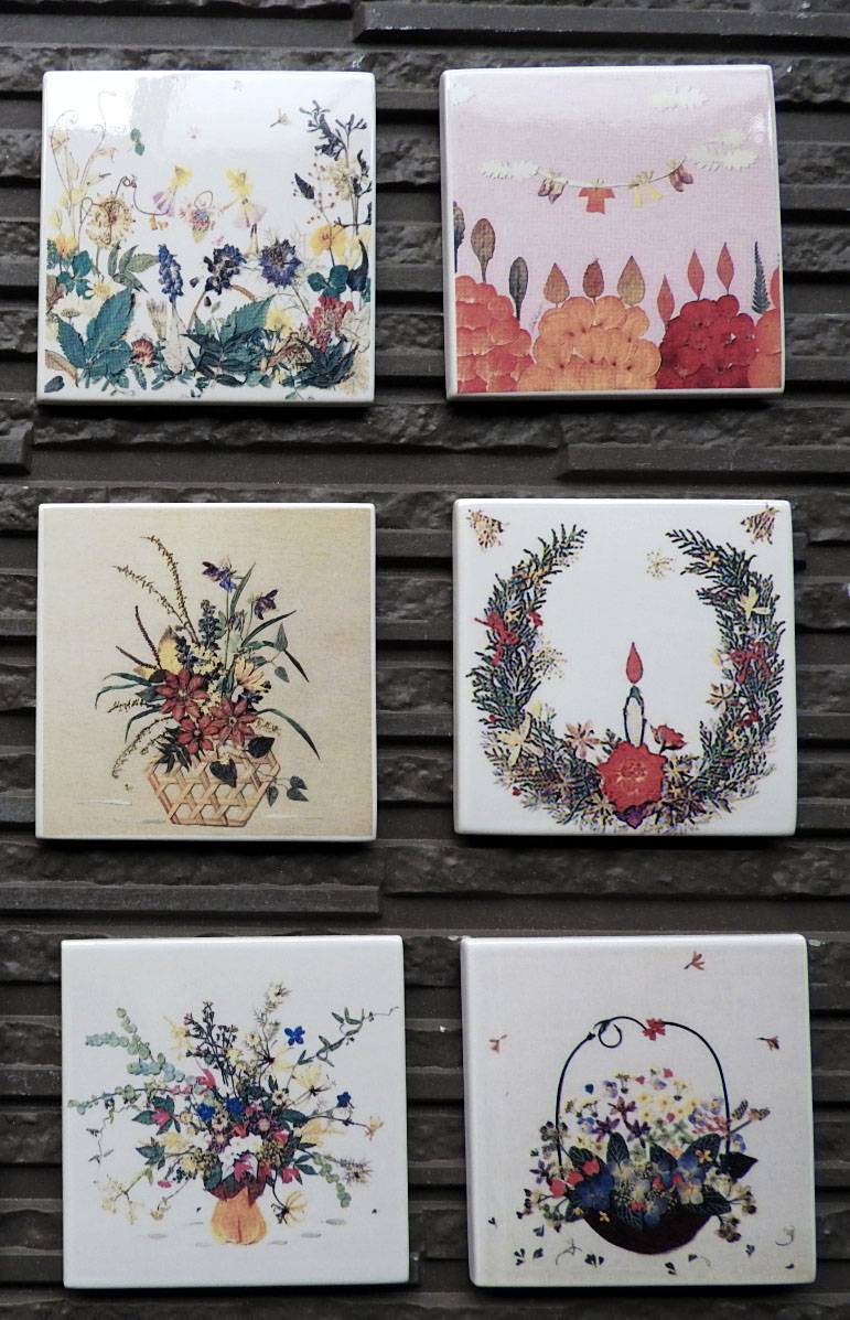 下の画像は、ご著書の『押し花の本』の表紙を写真陶板(フォトセラミックス)の製法で焼き上げたものです。