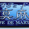さらに、表面に刻まれた文字は、彫り加工によって施されており、上絵具で着色し再度焼成することで、文字部分に自然な陰影が生まれています。そのため、プリントでは得られない立体感と奥行きがあり、日光や照明の角度によって豊かな表情を見せてくれます。