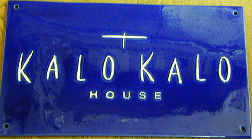 ![]() 神奈川県湘南にある ギャラリー 『KALOKALO HOUSE』 の陶製看板 瑠璃色の釉薬が印象的 |