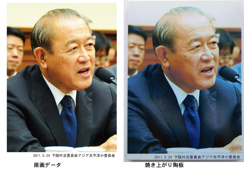 • 陶板やセラミックスに写真が焼き付けられるか印刷される。
