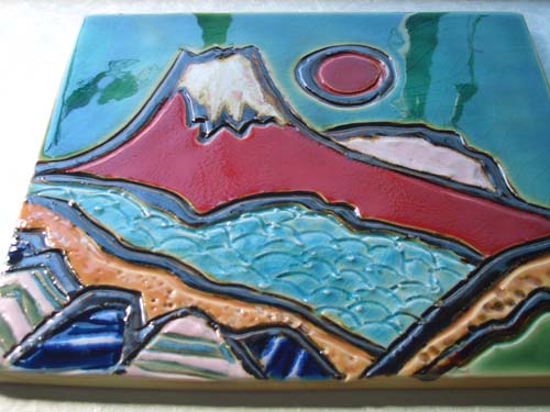 夏初め、太陽の光を浴びて、いきいきと成長する瑞々しい緑に囲まれた赤富士。 日の光が最も強くなる季節に聳え立つ、日本一の富士を力強く陶板に描きました。 色あせない陶板絵画を、開運のシンボルとして、玄関やリビングに飾りませんか。